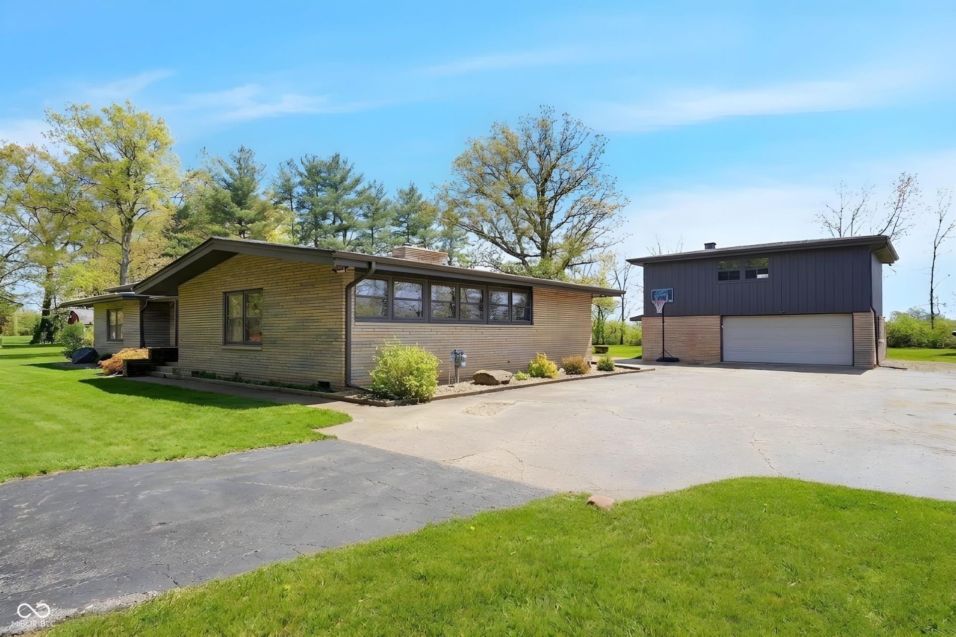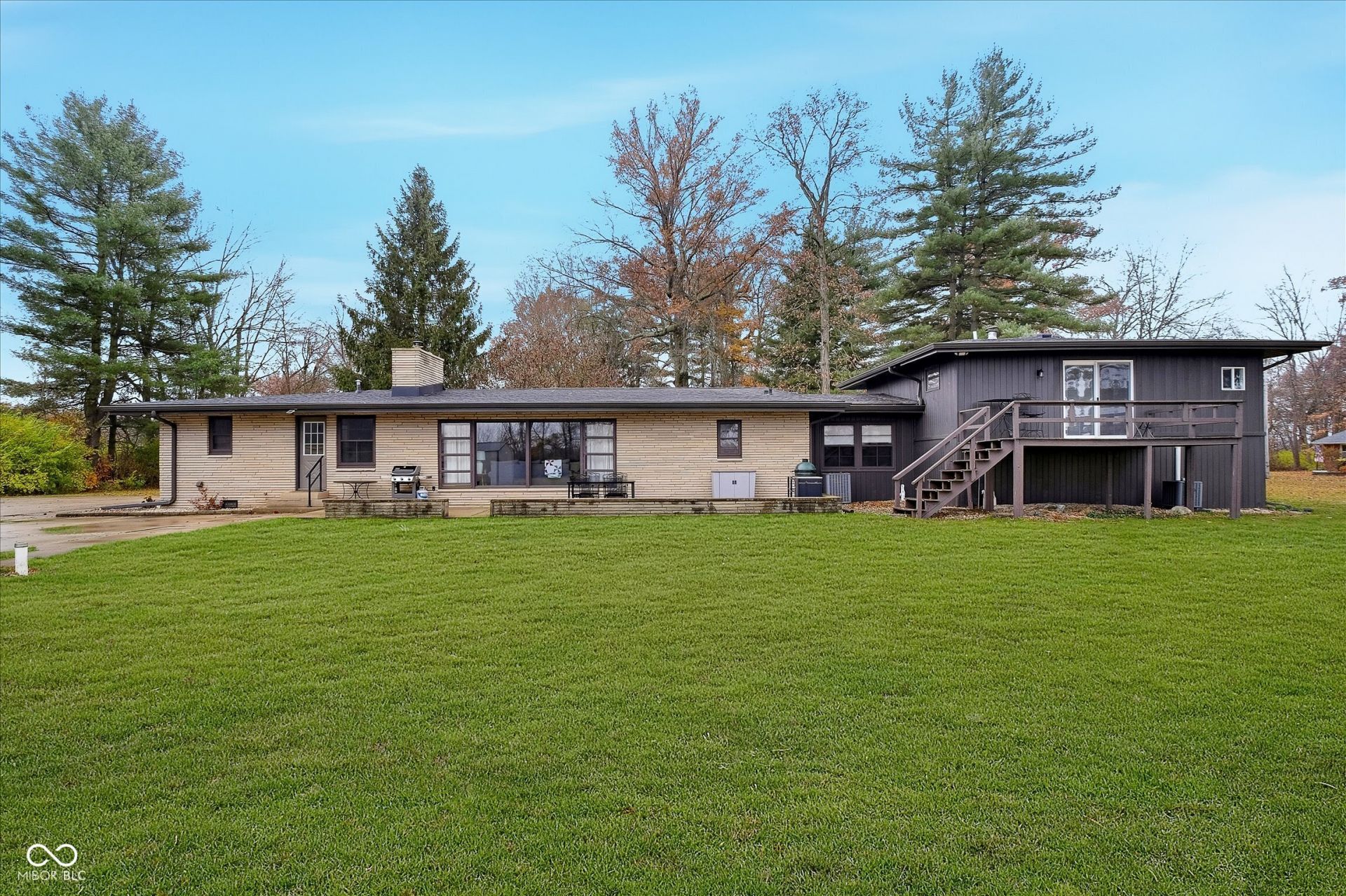 Mid-Century Retreat on 3 Acres | Tucked away and surrounded by mature trees, this exceptional 5-bed/3-full-bath home offers a rare blend of authentic mid-century design and modern updates. The entry showcases an exposed brick wall and decorative niche. The Living Room flows into the Dining Room, creating a space so perfect for entertaining... your guests may never leave. The Family Room boasts soaring lofted ceilings and rich wood-paneled walls. A wood-burning fireplace serves as a natural focal point. The spacious Kitchen works harder than your morning coffee. It features stainless-steel appliances, light countertops, crisp white cabinetry, and vinyl plank flooring. An impressive bank of windows floods the room with natural light... it might just turn you into a morning person. The primary Bedroom provides a quiet escape with neutral carpeting and double closets, and it opens to a wood deck. The primary en suite features a double vanity, a shower stall, and beautiful flooring. Three additional Bedrooms feature neutral carpets and ample closet space; they share a full bath with a double vanity. A fifth Bedroom is currently used as a home office, providing a quiet space for remote work. The Lower Level offers a versatile room that can function as a fitness center or playroom. For convenience, the main floor features a third full bathroom that also serves as a laundry room. The detached 2-car garage includes an upper-level carriage house. With its beamed ceiling, this area is the perfect canvas for a private studio, game room, or a place to park your college-aged kid who isn't quite ready for campus life. Extensive upgrades provide peace of mind: a new roof, septic line, chimney lining, updated plumbing, foundation improvements, lined crawl space, dual battery-backed sump pumps, and basement/crawl space dehumidifiers. See the Updates supplement for details. Make this your own slice of mid-century modern. Noisy neighbors and cookie-cutter designs not included.
